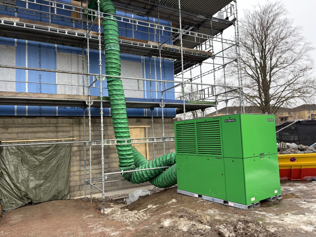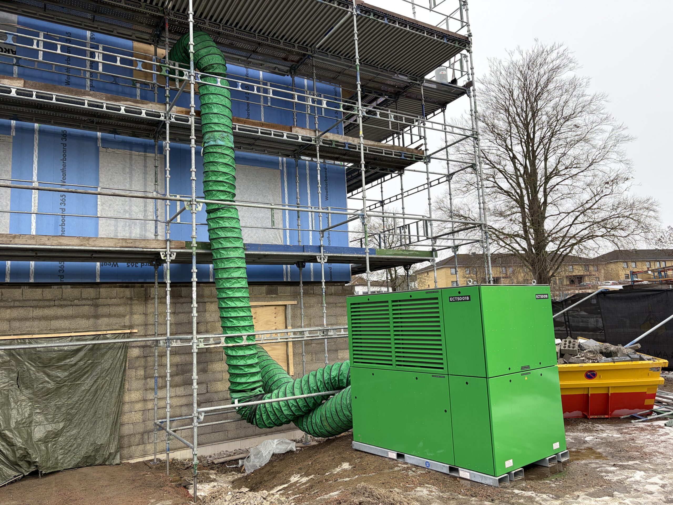 ECT50 är helt fossilfri och levererar stabil värme även vid extrem kyla. Den är konstruerad för att fungera ner till –25 °C och leverera full effekt ända upp till +40 °C, vilket gör den idealisk för nordiska byggarbetsplatser och temporära industrimiljöer. Den robusta uppbyggnaden och den snabba plug‑and‑play‑installationen gör att maskinen snabbt kan tas i drift och flyttas mellan arbetsplatser vid behov.
